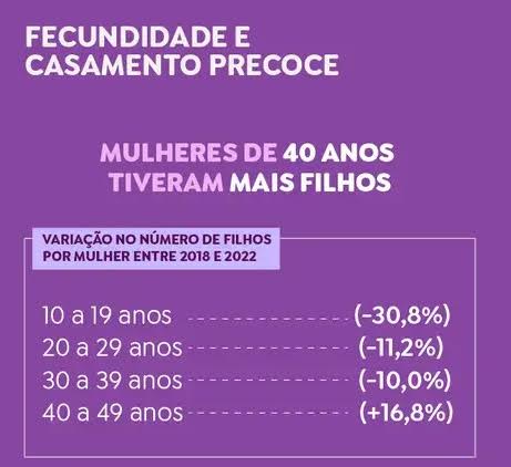 A pesquisa revela também que o nascimento de bebês filhos de mães com idade entre 10 e 19 anos reduziu 30,8% de 2018 para 2022, passando de 456,1 mil para 315,6 mil no período. “A gente chama a atenção para a importância disso, porque são mulheres que ainda estão estudando, terminando seu ciclo educacional, começando a pensar no mercado de trabalho”, diz a pesquisadora.