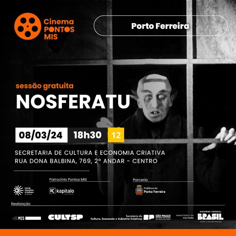 A Secretaria de Cultura e Economia Criativa de Porto Ferreira exibe nesta sexta-feira (08/03) mais uma sessão presencial de cinema do projeto Pontos MIS, em parceria com o Museu da Imagem e do Som de São Paulo.