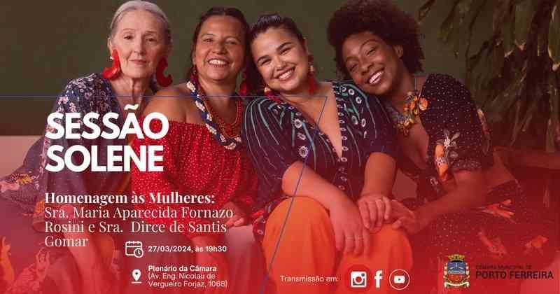 A Câmara Municipal de Porto Ferreira realizará, na próxima quarta-feira (27/03), a partir das 19h30, sessão solene em Homenagem à Mulher, como forma de comemorar o Dia Internacional das Mulheres. Duas importantes ferreirenses, indicadas pelos vereadores, receberão Certificado em celebração.