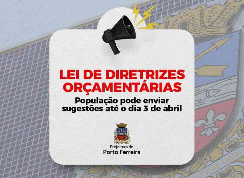 A Prefeitura de Porto Ferreira, por meio da Secretaria de Fazenda e Planejamento, informa que está disponível até o próximo dia 3 de abril (quarta-feira), o questionário para participação da população com propostas para elaboração da LDO (Lei de Diretrizes Orçamentárias) para o exercício de 2025.