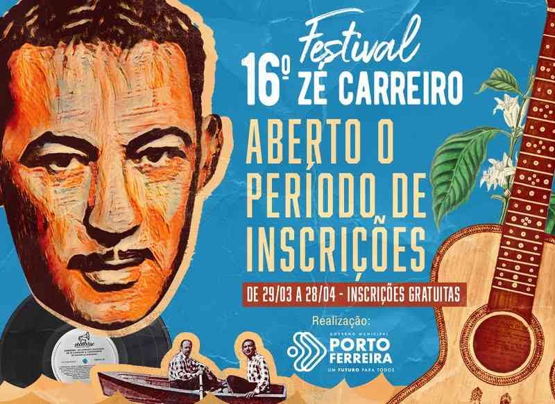 A Secretaria de Cultura e Economia Criativa de Porto Ferreira anuncia o 16º Festival de Música Raiz e Sertaneja Zé Carreiro, uma homenagem ao pioneiro do estilo sertanejo/caipira, Lúcio Rodrigues de Souza, mais conhecido como Zé Carreiro. O evento está marcado para os dias 17, 18 e 19 de maio, no Espaço Luiz Antônio Camarotti, no Parque Linear (Centro).