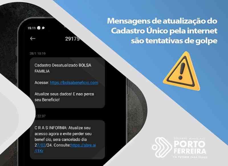 As mensagens falsas informam que, caso o cidadão não atualize o Cadastro Único pela internet, corre o risco de perder os benefícios sociais do governo federal, estadual ou municipal.