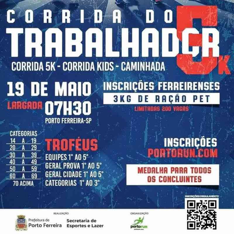 A Secretaria de Esportes e Lazer de Porto Ferreira anunciou a abertura das inscrições para a Corrida do Trabalhador, que ocorre em 19 de maio (domingo), com largada prevista para às 7h30.