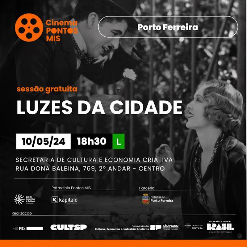 Nesta ocasião será reproduzido o filme “Luzes da Cidade”, de Charlie Chaplin. A exibição tem início a partir das 18h30, na sede da Secretaria de Cultura e Economia Criativa – rua Dona Balbina, 769, 2° andar, Centro – e a entrada é gratuita.