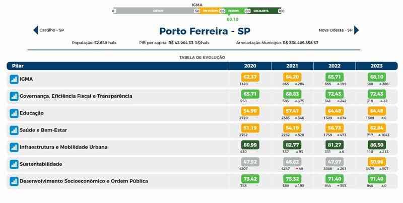 Na tabela evolucional (veja nas imagens), Porto Ferreira se destaca por ter avançado ou mantido sua avaliação em comparação ao ano anterior.