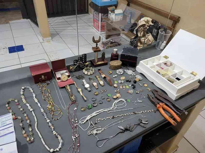 Realizada a abordagem onde constataram que, no interior das bolsas haviam vários objetos. Ao indagar sobre a procedência, prontamente confessou que eram oriundos de furto, inclusive declinando as residências furtadas sendo duas casas na Rua Matias Cardoso. Diante dos fato foi proferida voz de prisão por estar ele em flagrante delito, pela prática de furto qualificado.