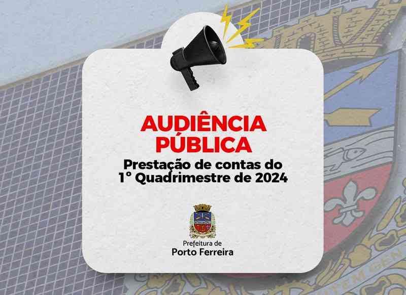 A Prefeitura de Porto Ferreira, cumprindo o disposto no artigo 9º, §4º, da Lei Complementar 101, de 4 de maio de 2000 (Lei de Responsabilidade Fiscal), convida a população em geral para audiência pública referente ao 1º quadrimestre de 2024. O evento será realizado nesta quarta-feira (22/05), às 18 horas, no Plenário Syrio Ignátios, da Câmara Municipal de Porto Ferreira.