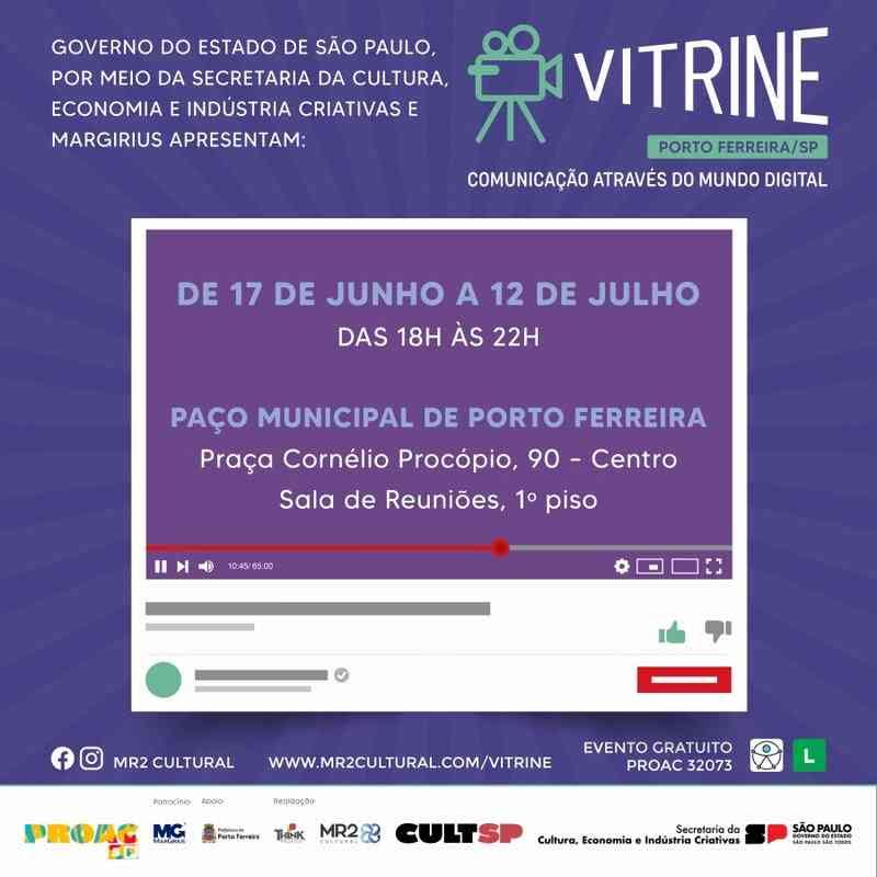 O Vitrine – Comunicação através do Mundo Digital é um projeto aprovado pelo Governo do Estado de São Paulo, por meio da Secretaria de Cultura, Economia e Indústrias Criativas, via ProAC, realizado pela MR2 Cultural, com apoio da Think Projetos e patrocínio da MarGirus.