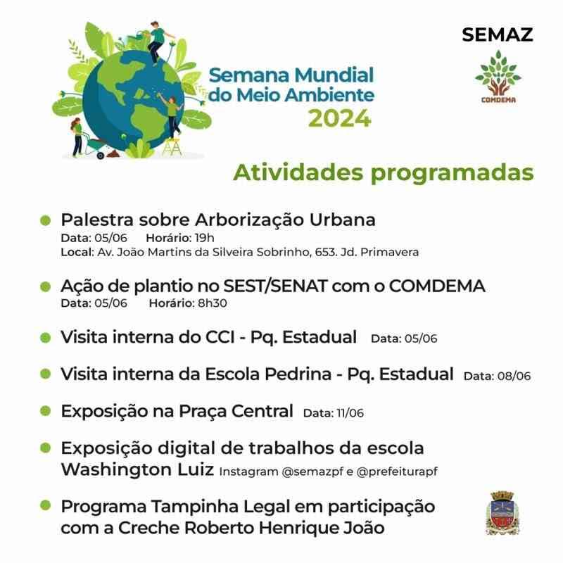 A Secretaria de Meio Ambiente e Zeladoria (Semaz) de Porto Ferreira, juntamente com o Conselho Municipal de Defesa do Meio Ambiente (Comdema), programou diversas atividades para conscientizar a comunidade sobre a importância de manter um meio ambiente ecologicamente equilibrado, bem de uso comum do povo e essencial à sadia qualidade de vida, com o objetivo de defendê-lo e preservá-lo para as presentes e futuras gerações.
