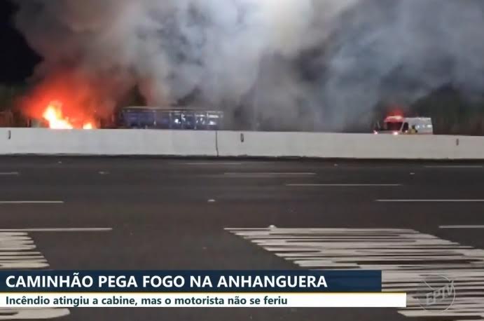 Um caminhão transportando areia pegou fogo durante a madrugada desta quinta-feira (4), na Rodovia Anhanguera (SP-330), entre Santa Rita do Passa Quatro e São Simão. O incidente aconteceu por volta das 5h40 no km 253. O Corpo de Bombeiros foi chamado e controlou o incêndio. O motorista não se feriu.