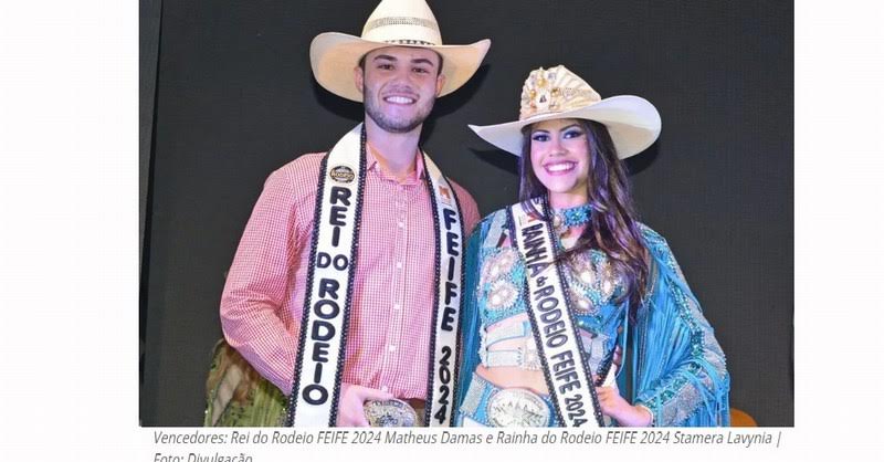 Matheus Damas, Rei do Rodeio FEIFE 2024: Matheus Damas, de 20 anos, trabalha como auxiliar administrativo. Ele considera sua vitória uma honra única, especialmente por poder representar uma festa que frequenta desde criança. Matheus pretende trabalhar mais sua imagem e aproveitar as oportunidades que o título proporcionará para seu crescimento pessoal. Seu maior sonho é proporcionar estabilidade financeira para sua família, principalmente para sua mãe.