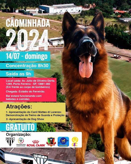 A 1ª Cãominhada do PFFC e parceria com Canil Matteo ocorre em Porto Ferreira neste domingo (14/07), com horário da concentração a partir das 8h30 em frente a sede do Corpo de Bombeiros da cidade, localizada na Avenida Júlio de Oliveira Dorta nº1265 – Jardim Aeroporto, com destino ao Estádio Ferreirão – localizado na Avenida Álvaro de Góes Valeriani nº 1366.