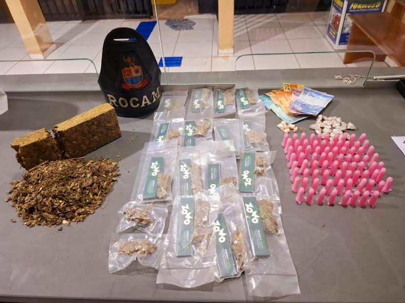 Durante a patrulha, os policiais avistaram um indivíduo em atitude suspeita correndo com uma sacola nas mãos. Após perseguição, o suspeito foi abordado e, durante a revista, foram encontradas na sacola várias substâncias entorpecentes, além de uma quantia em dinheiro.