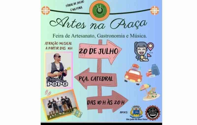 A Feira Artes na Praça tem no comando a artesã Fabiana Fontainhas, e acontece todo terceiro sábado de cada mês na Praça Governador Armando Salles, das 10h às 20h. A Feira conta com expositores de artesanato e gastronomia, e neste sábado o som ficará por conta do Pagode do Popó, que iniciarão a apresentação às 16 horas, com muito samba e pagode de qualidade.