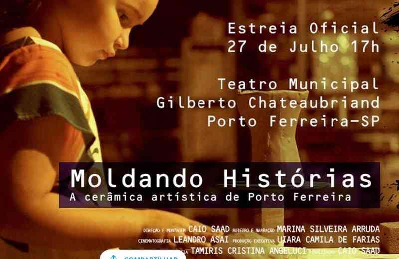 A Secretaria de Cultura e Economia Criativa de Porto Ferreira tem o prazer de anunciar o vídeo documentário "Moldando Histórias: A Cerâmica Artística de Porto Ferreira", uma produção do agente cultural Caio Saad de Souza Paula, o qual será apresentado neste sábado, 27 de julho, no Teatro Municipal Gilberto Chateaubriand, localizado à Rua São Sebastião nº 324, Centro.