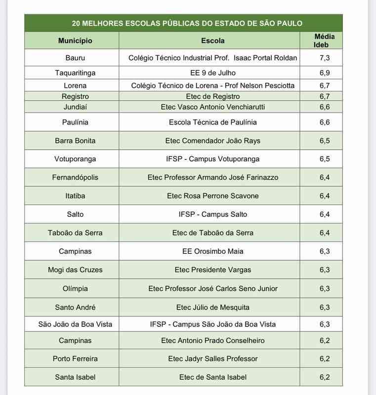 A Etec Professor Jadyr Salles de Porto Ferreira se destacou no último resultado do IDEB (Índice de Desenvolvimento da Educação Básica), figurando entre as 20 melhores escolas públicas do estado de SP.