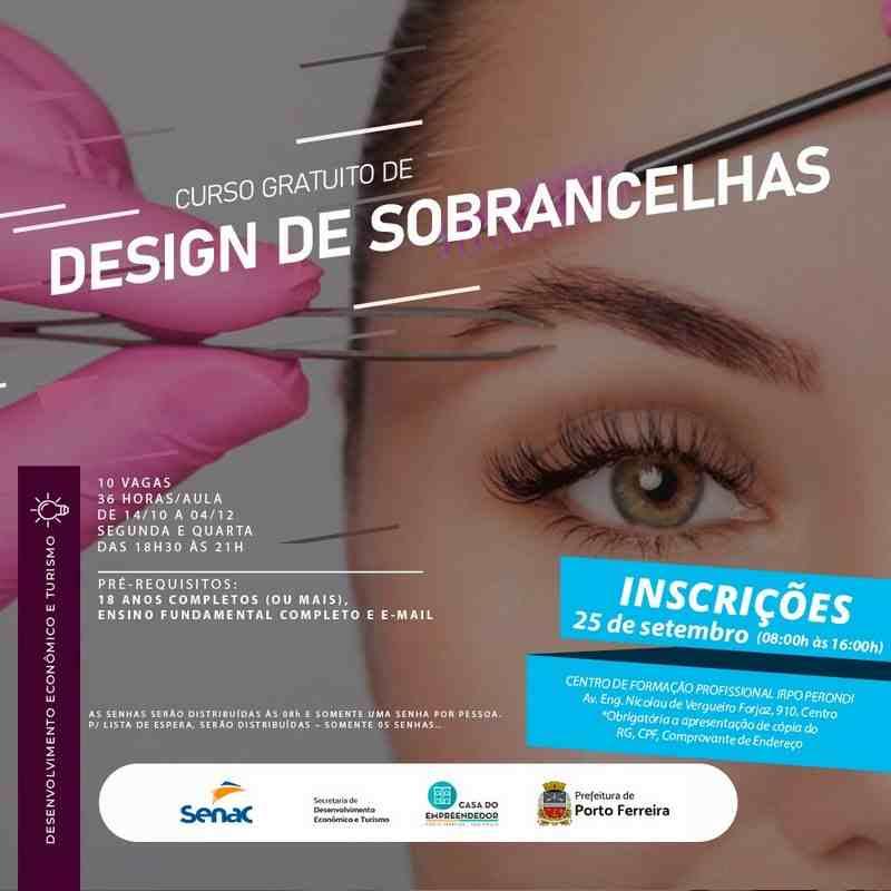 A Prefeitura de Porto Ferreira, em parceria com o Senac (Serviço Nacional de Aprendizagem Comercial), por intermédio da Secretaria de Desenvolvimento Econômico e Turismo, vai oferecer vagas para mais dois cursos gratuitos na próxima semana. Veja as informações:
