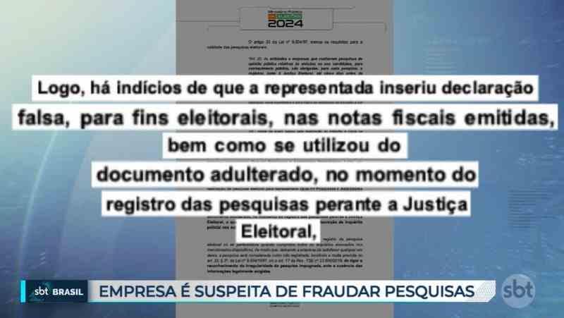 Uma investigação exclusiva do SBT Brasil, veja vídeo do reportagem nesse link, revelou que uma empresa é suspeita de fraudar pesquisas eleitorais para beneficiar candidatos, forjando contratantes para registrar os levantamentos na Justiça Eleitoral.