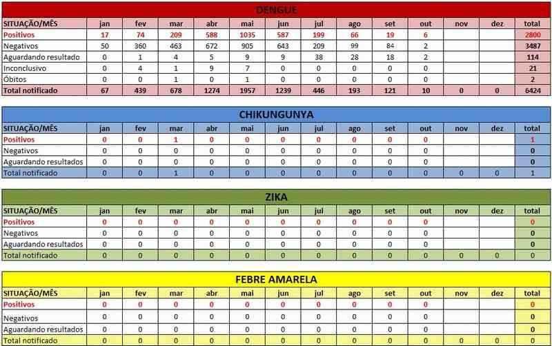 Também foram registradas duas mortes por dengue este ano, nos meses de março e maio, e um caso de chikungunya, em março.
