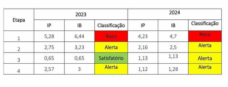 Com os resultados obtidos, Porto Ferreira ainda se encontra em situação de alerta para epidemia. Na primeira avaliação do ano, o município estava em situação de risco. Veja na imagem no topo da reportagem um comparativo entre as avaliações feitas em 2023 e 2024 .