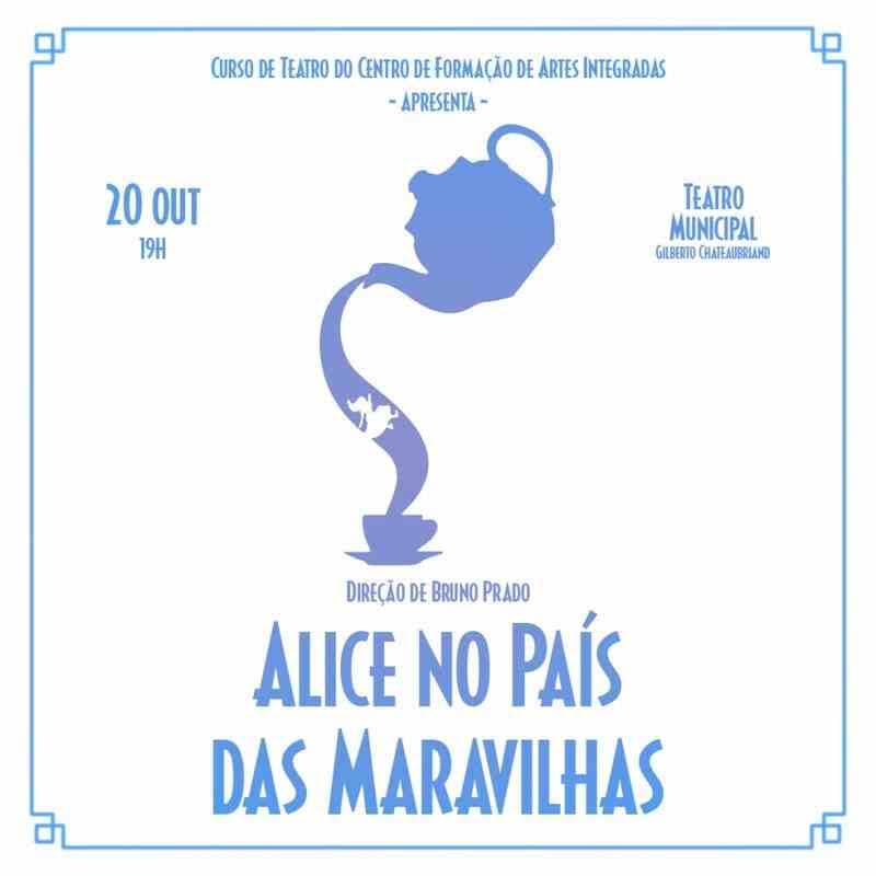 No domingo (20/10), a partir das 19h, o Teatro Municipal Gilberto Chateaubriand receberá o espetáculo teatral “Alice no País das Maravilhas”, apresentado pelos alunos do curso de Teatro do Centro Municipal de Formação de Artes Integradas da Prefeitura de Porto Ferreira. A entrada é gratuita, com retirada de ingressos pela plataforma Sympla.