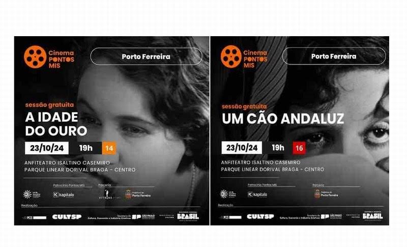 Na próxima quarta-feira (23/10), o curta-metragem “Um Cão Andaluz” e o drama “A Idade do Ouro” serão exibidos, a partir das 19h, no Anfiteatro Municipal Isaltino Casemiro, localizado no Parque Linear Dorival Braga. A entrada é gratuita.