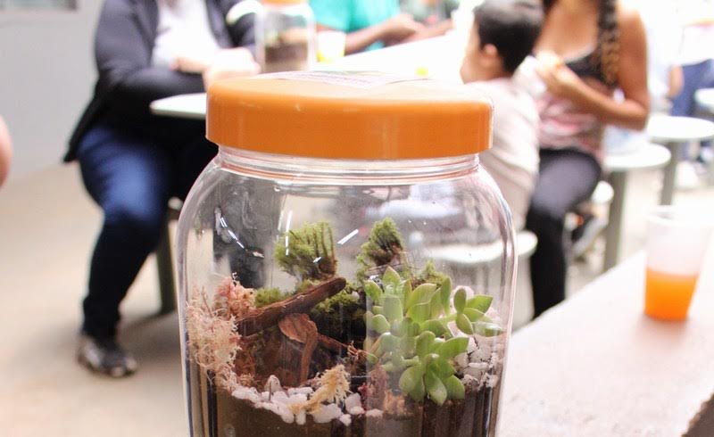 A Oficina de Terrário permitiu que os pequenos criassem miniecossistemas que replicam o ciclo da água, oferecendo-lhes uma compreensão prática das mudanças climáticas e dos processos naturais.