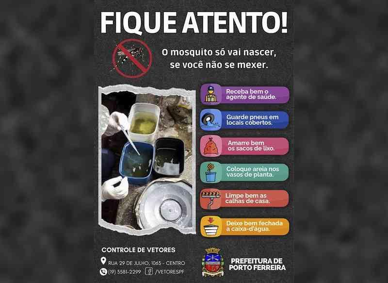 A Seção de Controle de Vetores alerta para o retorno do período com chuvas e reforça que é preciso que cada um continue o trabalho preventivo para eliminar possíveis criadouros do mosquito, mesmo com a diminuição das notificações. A principal medida é eliminar água parada.