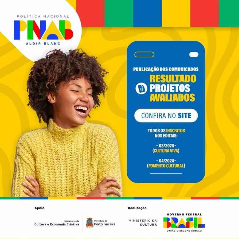 A Prefeitura de Porto Ferreira publicou os resultados preliminares e provisórios dos Editais 03/2024 e 04/2024 da Política Nacional Aldir Blanc (PNAB). Após análise rigorosa da Comissão de Análise e Seleção, composta por especialistas, os projetos inscritos receberam suas notas, que agora estão disponíveis para consulta.