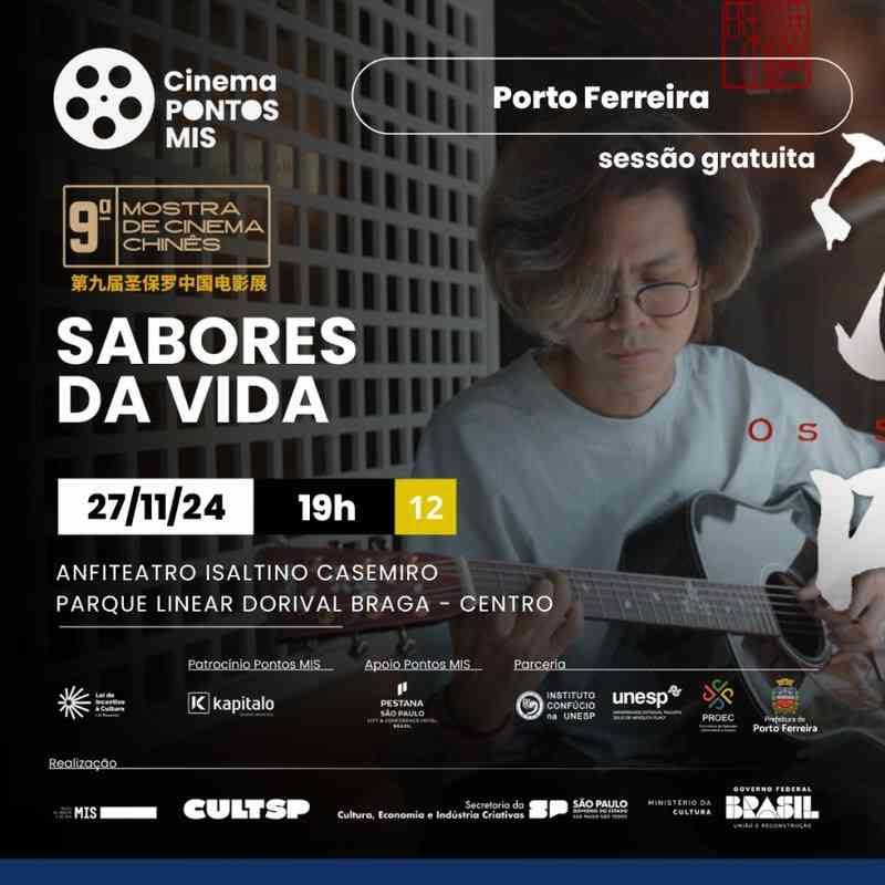 Nesta quarta-feira (27/11), a partir das 19h, o documentário “Sabores da Vida”, da 9ª Mostra de Cinema Chinês, será exibido no Anfiteatro Municipal Isaltino Casemiro, localizado no Parque Linear Dorival Braga, no Centro.