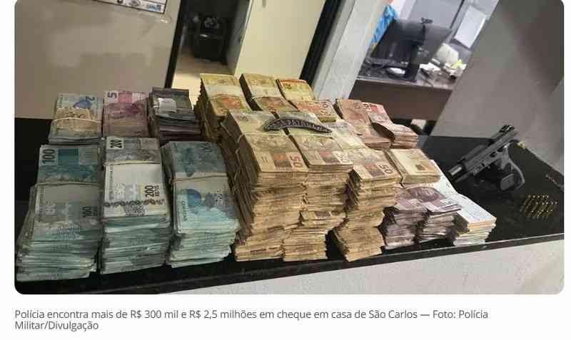 Policiais militares encontraram R$ 342 mil em dinheiro e R$ 2,5 milhões em cheques em uma casa no bairro Itamaraty, em São Carlos (SP), na noite de sexta-feira (29). Também foi apreendida uma arma e dez munições.