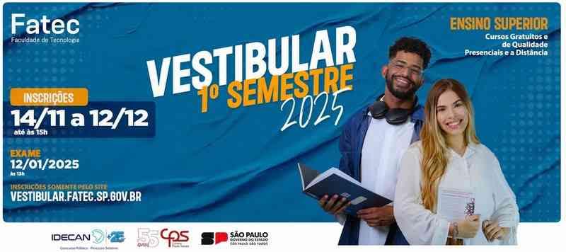 Para concorrer a uma vaga para o curso de Big Data para Industria e demais graduações das Fatecs é preciso se inscrever no processo seletivo, até as 15 horas, do dia 12 de dezembro, exclusivamente pelo site vestibular.fatec.sp.gov.br. A prova será aplicada em 12 de janeiro de 2025. A taxa de inscrição é de R$ 60.