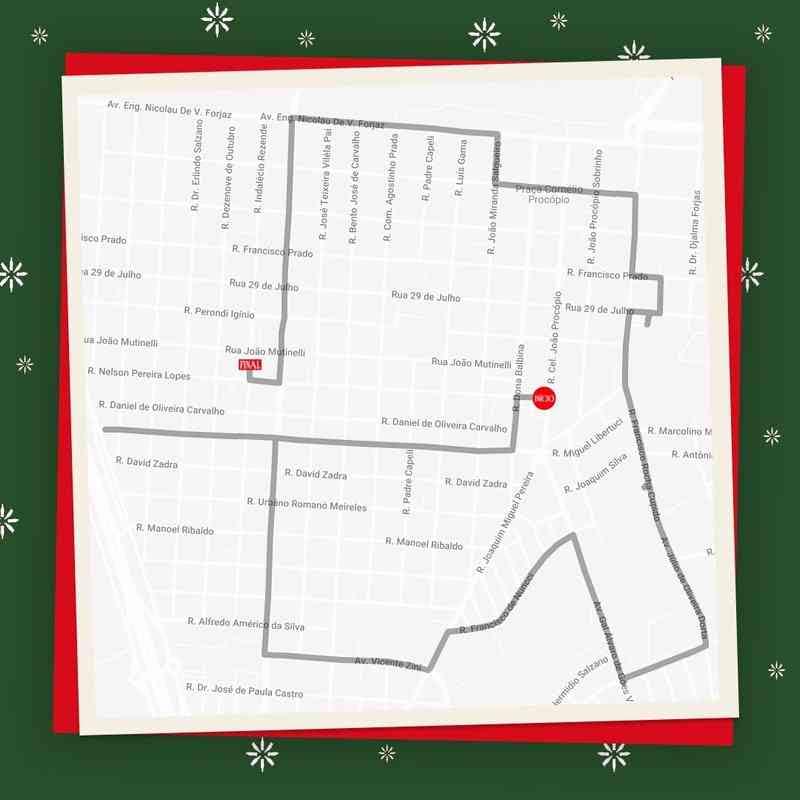 A Secretaria de Cultura e Economia Criativa divulgou o trajeto oficial da aguardada Caravana Iluminada de Natal da Coca-Cola em Porto Ferreira. O desfile mágico ocorrerá na terça-feira (10/12), a partir das 19 horas.