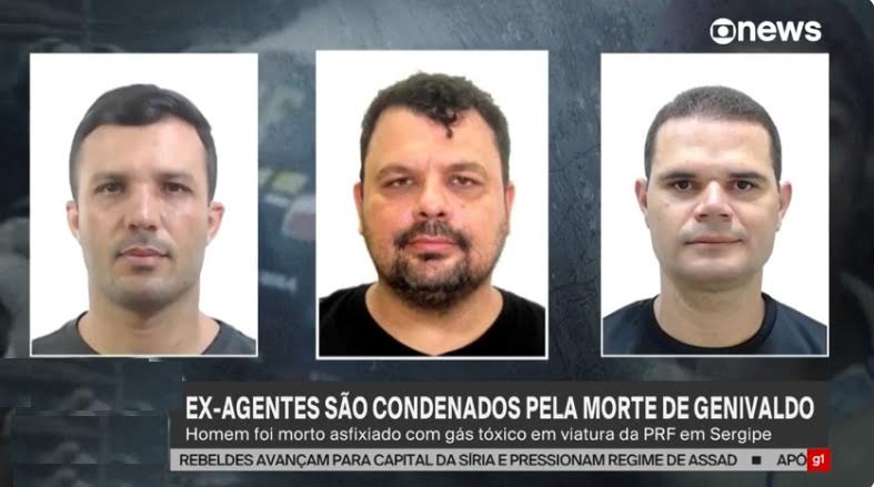 Após 2 anos, 6 meses e 14 dias da abordagem que matou Genivaldo Santos, de 38 anos, em Umbaúba (SE), os ex-policiais rodoviários federais William Noia, Kleber Freitas e Paulo Rodolpho foram condenados, nas primeiras horas do último sábado (07/11). As penas vão de 23 a 28 anos de prisão. Veja reportagem da Globo News sobre a setença nesse link.