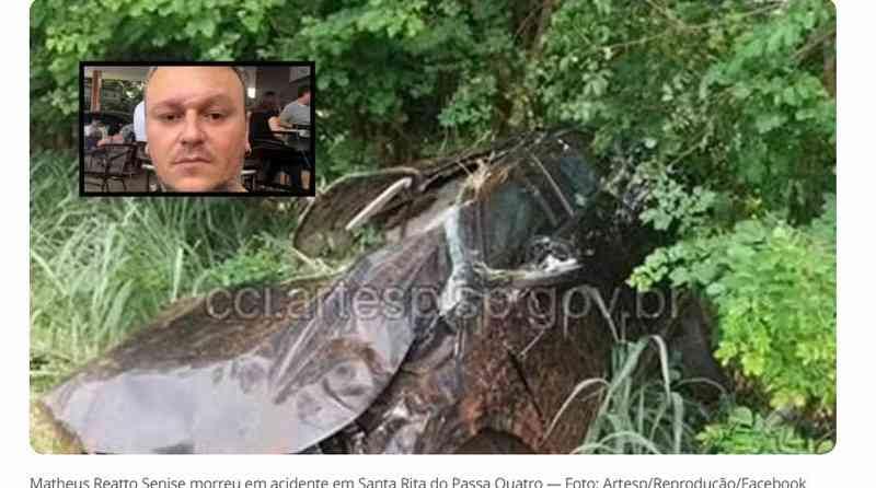 Matheus Reatto Senise, de 47 anos, morreu após bater o carro contra uma árvore e capotar na Rodovia Zequinha de Abreu (SPA-241), em Santa Rita do Passa Quatro (SP), neste sábado (14).