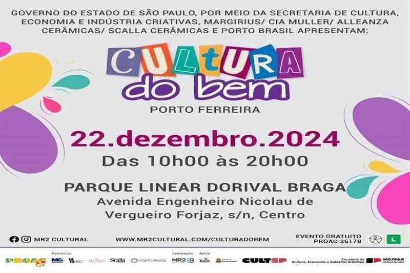 Teatro, dança, música, artes circenses, contação de histórias e arte urbana são algumas das intervenções previstas durante o Festival Cultura do Bem, que será realizado no próximo domingo, 22/12, em Porto Ferreira.