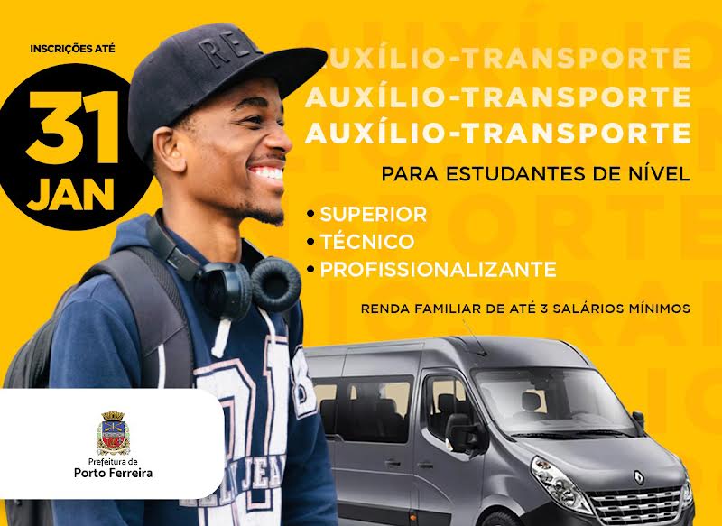A Prefeitura de Porto Ferreira informa que os estudantes de nível superior, técnico e profissionalizante interessados no benefício do auxílio-transporte para o primeiro semestre de 2025 podem fazer suas inscrições até o dia 31 de janeiro.