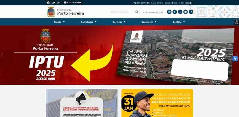 Uma outra forma de acessar, também pelo site oficial www.portoferreira.sp.gov.br, é rolar a página mais abaixo e clicar em “Serviços para o Cidadão”.