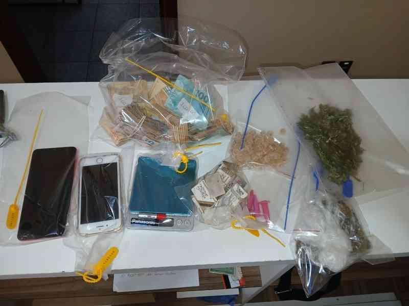 No interior da casa, os policiais encontraram R$ 10 mil em espécie, pinos de cocaína, mais porções de maconha e um manuscrito com a contabilidade do tráfico semanal. Todo o material foi apreendido.