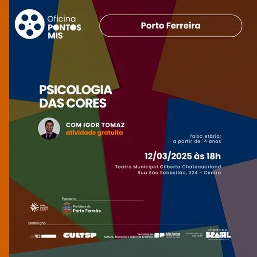 É essa a proposta da oficina "Psicologia das Cores", ministrada pelo publicitário, professor e artista Igor Cardoso Tomaz. Em um ambiente dinâmico e divertido, os participantes irão explorar o universo cromático, desvendando os segredos por trás de cada cor e aprendendo a aplicá-las em fotografias e produções visuais.