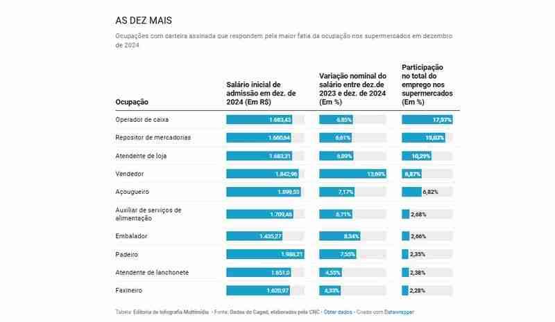 Entre as funções mais afetadas, destacam-se: Operador de caixa, Padeiro, Açougueiro, Embalador, Repositor de mercadorias, Atendente de loja, Vendedor e Auxiliar de serviços de alimentação.