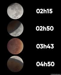 O espetáculo de verdade terá início às 2h09 da madrugada, quando parte da Lua começa a ser encoberta pela umbra e o eclipse se torna visível a olho nu. A totalidade do eclipse lunar – ou seja, quando a Lua toda ficará encoberta – terá início às 3h26, atingirá seu máximo às 3h58, e terminará às 4h31.