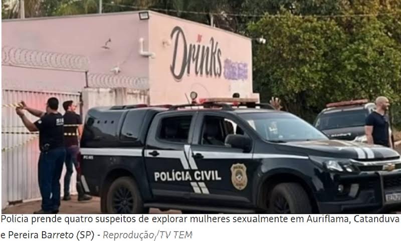 Quatro pessoas foram presas na última, segunda-feira (24/03) sob suspeita de integrarem uma organização criminosa que explorava sexualmente mulheres nas cidades de Auriflama, Catanduva e Pereira Barreto, no interior de São Paulo, e em Aparecida do Taboado (MS). Dez vítimas já foram identificadas pela polícia. Uma pessoa segue foragida.