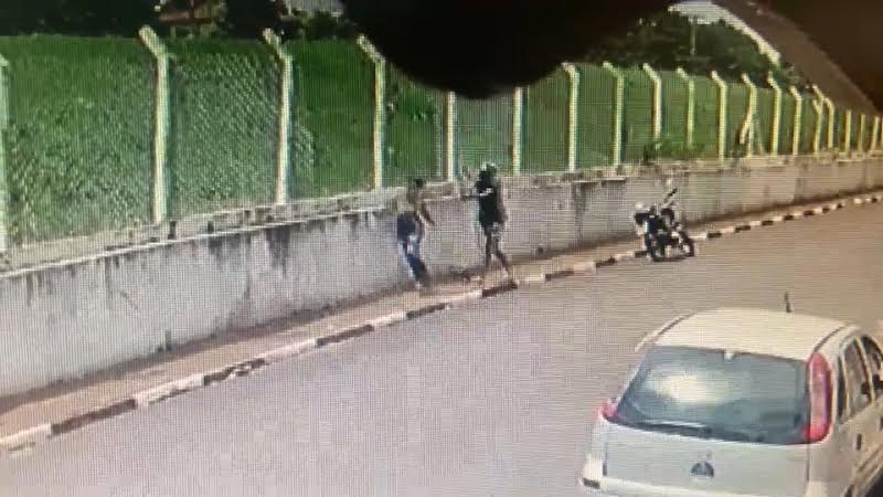 As imagens da câmera de segurança mostram a vítima e o suspeito trafegando em duas motos pela Rua José Pedroso de Moraes. Em determinado momento, a mulher para de um lado da rua e o suspeito faz o mesmo do outro lado. Ele desce da moto, vai até a ex-companheira e atira contra ela. Mesmo caída no chão, a vítima é atingida por mais um tiro na cabeça. Em seguida, o assassino foge do local.