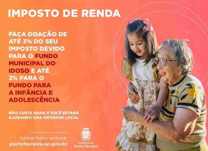 A lei federal 13.797/2019 permite que o contribuinte do Imposto de Renda Pessoa Física faça doação de até 6% do seu imposto devido para os Fundos da Criança e do Idoso, de Porto Ferreira, limitado a 3% para cada fundo.