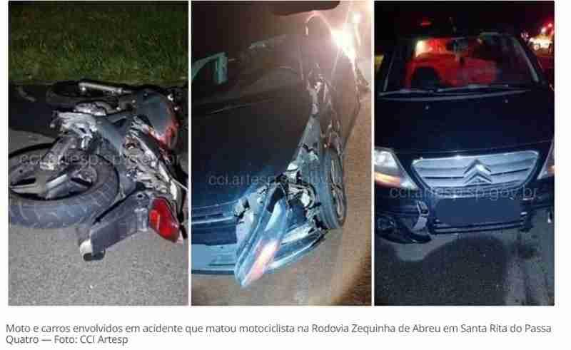 Um motociclista morreu na noite de sexta-feira (2) após se envolver em um grave acidente na Rodovia Zequinha de Abreu (SPA-241/330), em Santa Rita do Passa Quatro. O caso ocorreu por volta das 21h30, no km 4, sentido oeste, e envolveu três veículos, segundo informações do Centro de Controle de Informações da Artesp (Agência de Transportes do Estado de São Paulo).