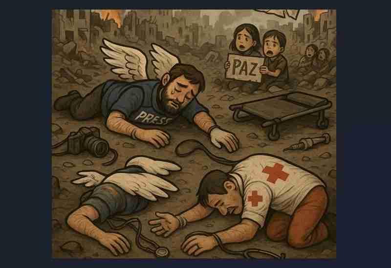 *Fontes: BBC DWataques-de-israel-mata-jornalistabombardeio-israelense-mata-nove-filhos-de-casal-de-médicos-em-gaza – ilustração produzida com auxílio de IA
