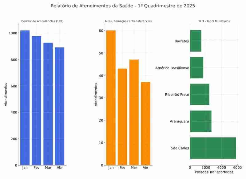 A Secretaria de Saúde da Prefeitura de Porto Ferreira divulgou o relatório de atendimentos e serviços prestados entre janeiro e abril de 2025, destacando o trabalho da Central de Ambulâncias, os transportes para tratamento em outras cidades, os atendimentos de Fisioterapia e os atendimentos de urgência como remoções, altas e transferências.