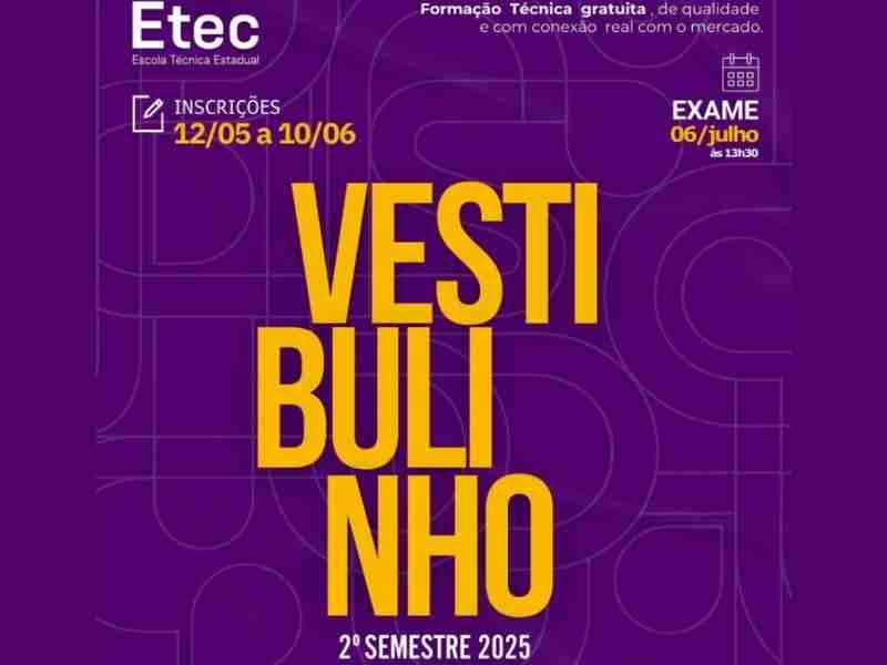 O Centro Paula Souza (CPS) está com inscrições abertas para o Vestibulinho das Escolas Técnicas Estaduais (Etecs). Além das opções presenciais, o processo seletivo oferece 4.860 vagas em cursos técnicos online gratuitos. As formações representam uma oportunidade para quem busca qualificação profissional com flexibilidade de tempo e local, sem abrir mão da qualidade de ensino.
