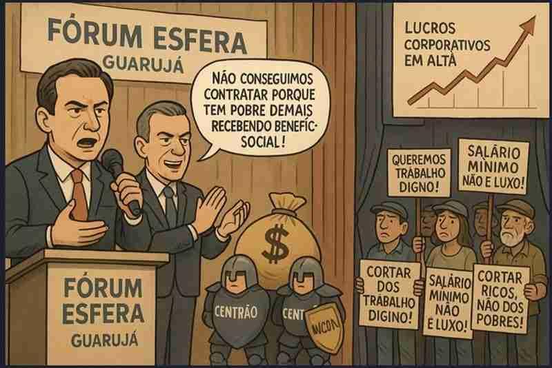 Durante o Fórum Esfera, realizado ontem – sábado (07/06) no Guarujá (SP), empresários influentes e representantes do Centrão deixaram claro seu alinhamento em torno de uma agenda que inclui a contenção dos gastos sociais, a manutenção de incentivos fiscais aos mais ricos e a oposição a um eventual aumento do salário mínimo.